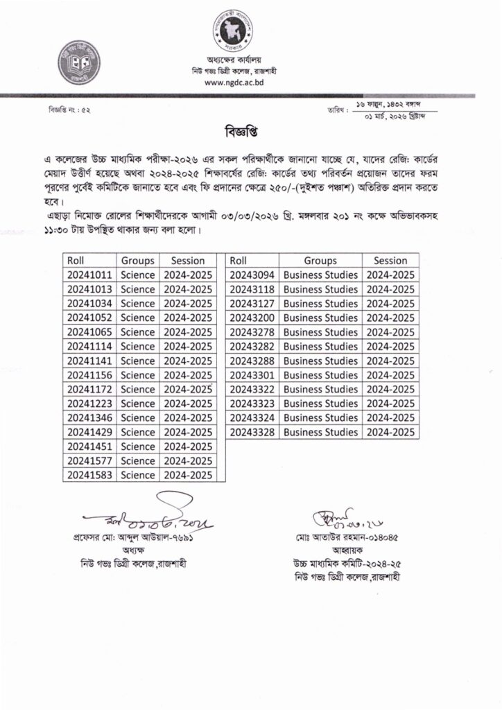 এইচএসসি পরীক্ষা ২০২৬ এর ফরম পূরণ বিষয়ে বিশেষ বিজ্ঞপ্তি