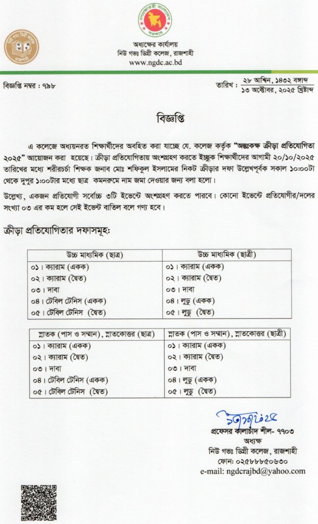 আন্তঃকক্ষ ক্রীড়া প্রতিযোগিতার বিজ্ঞপ্তি
