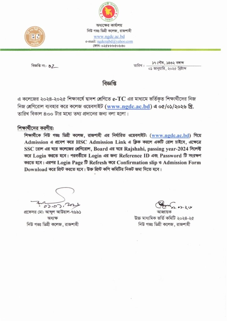 একাদশ শ্রেণিতে e-TC এর মধ্যমে ভর্তিকৃত শিক্ষার্থীদের অনলাইনে ডাটা এন্ট্রির বিজ্ঞপ্তি