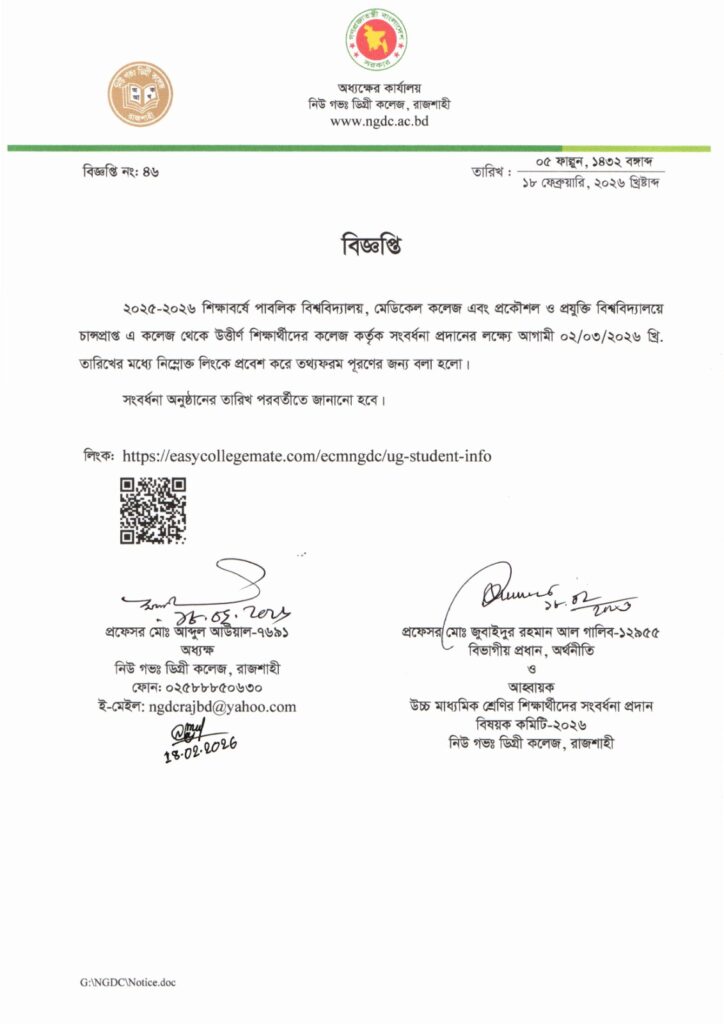 কৃতি শিক্ষার্থী সংবর্ধনা প্রদানের বিজ্ঞপ্তি