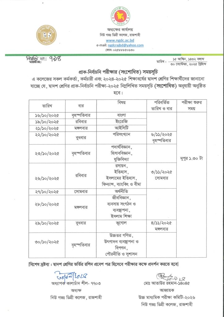 দ্বাদশ শ্রেণির প্রাক-নির্বাচনি পরীক্ষার (সংশোধিত) সময়সূচি