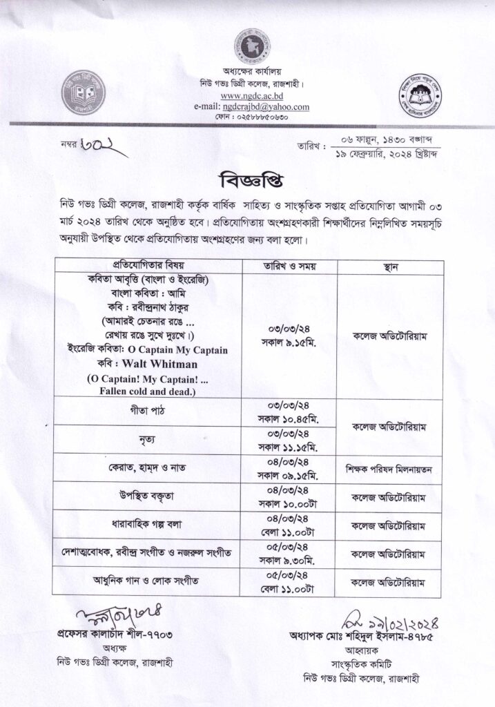 বার্ষিক সাহিত্য সাংস্কৃতিক সপ্তাহ প্রতিযোগিতার বিজ্ঞপ্তি