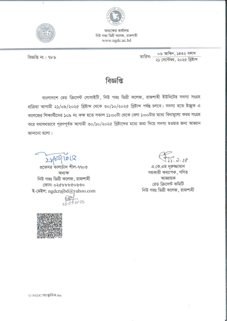 রেড ক্রিসেন্ট সোসাইটির সদদ্য হওয়ার বিজ্ঞপ্তি